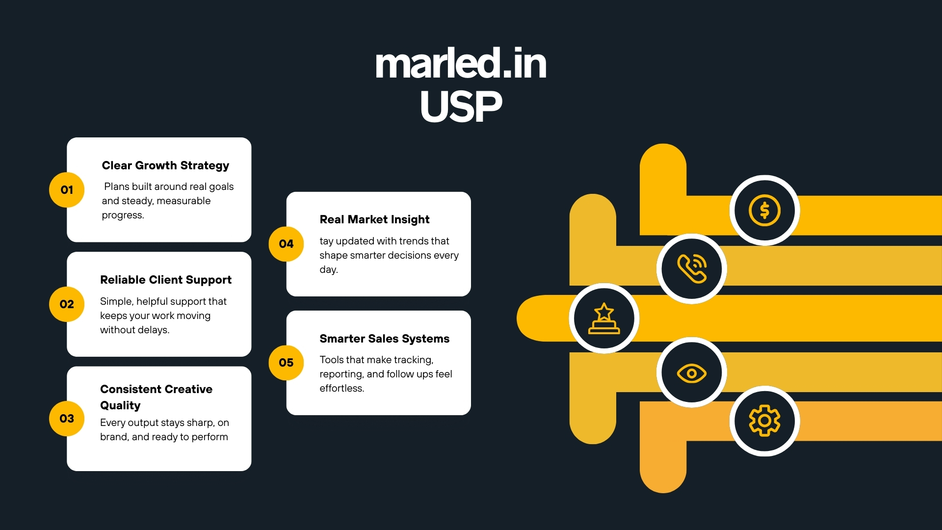 Marled helps brands grow with clear strategy, steady content, strong design and qualified leads. We focus on practical execution so your marketing feels organised and moves your audience toward action.